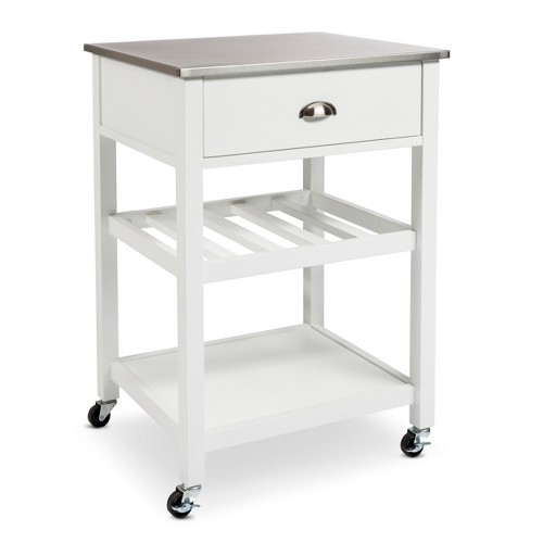 Liberty White Kitchen Cart With Stainless Steel Top By Home ...